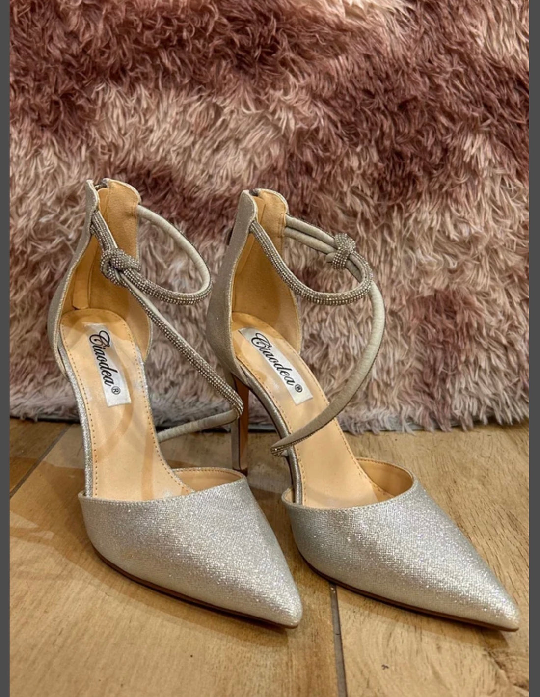 Décolleté a punta con profilo laterale aperto. L'intera superficie esterna è ricoperta da una cascata di...